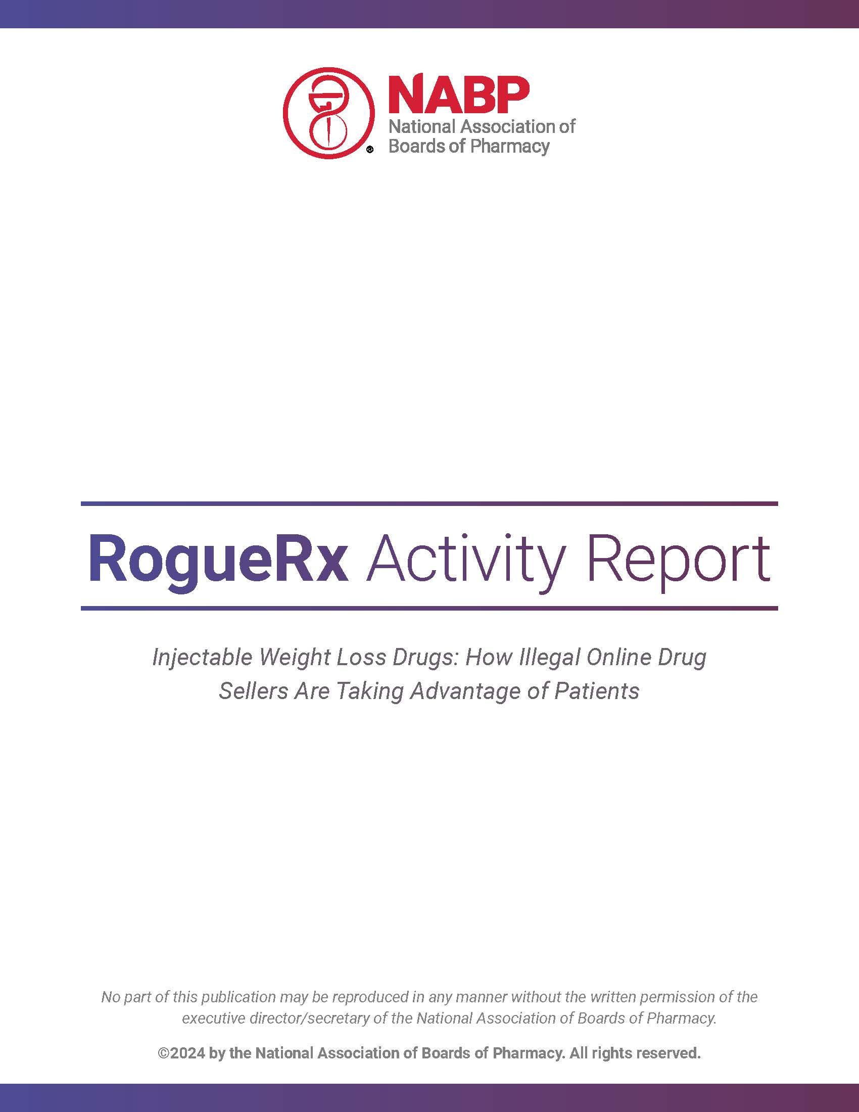 NABP continuously analyzes the online pharmacy landscape to identify and expose new or developing threats to patient safety. The findings are compiled and published in the RogueRx Activity Report, which is made available, on average, twice a year.
